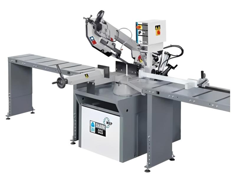 Shark 281 CCS, uma serra de fita manual versátil projetada para realizar cortes em materiais maciços com inclinação de até 60 graus.